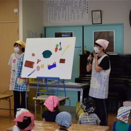 また食育の一環として、料理の素材を学び、子ども達の「食べ物」への関心と理解を深め、バランスよく食べることの大切さ、健康な体づくりについて学びます。