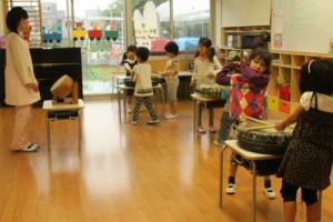 ライオン組のお友だちは太鼓の練習を頑張りました(*^_^*)