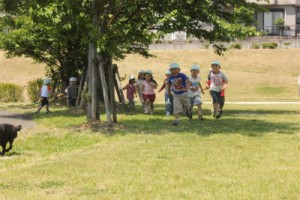 広場で犬を見つけて追いかけっこをしたよ(^_^)v