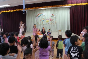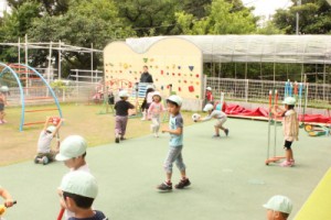 幼稚部は園庭で3クラス仲良く遊んでいました♪