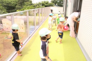 ベランダでは、ボールを投げたり追いかけたりして楽しく遊びました\(^o^)/