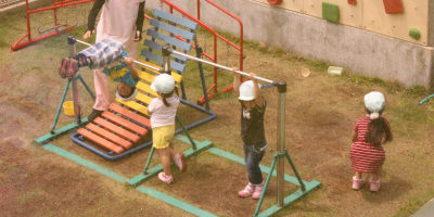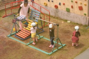 園庭では鉄棒に挑戦する子やお友達と虫探しをする子どもたち!!