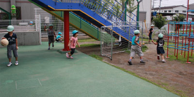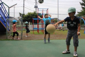 今日はいい天気で幼稚部のみんなは園庭で元気に走り回って遊びました(^O^)