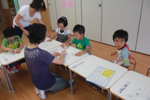 ライオン組はアルファベットを書く練習!!書き順が難しいなあ~(>_<)