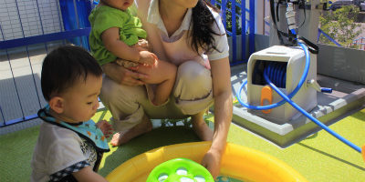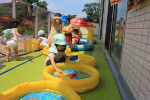 幼稚部のみんなも園庭でプールを楽しんだよ\(^o^)/
