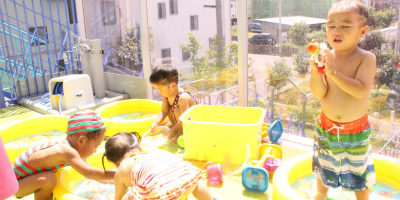 ペンギン組のお友だちは水鉄砲やポンプのおもちゃで遊ぶのが大好きです❤