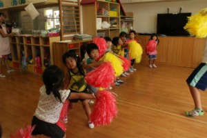 ポンポンを持って見本を見ながら一生懸命踊っていました!
