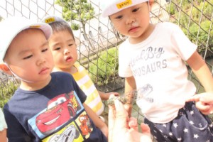 みんなで手を繋いでセミの鳴き声のする方をキョロキョロしながら歩いていると・・・・
