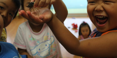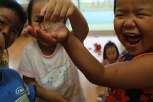 子どもたちは毎日見つけているセミには慣れっこのようですね(*^^)v