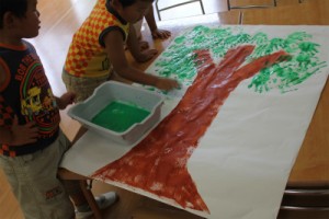 なにやら模造紙に絵を描いているようですが・・・
