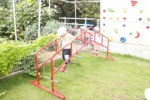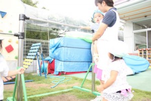 太鼓橋では、落ちないように上手に吊り橋を渡っていました。