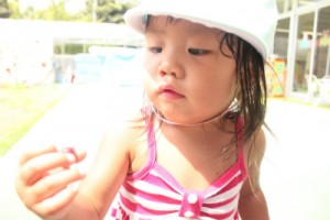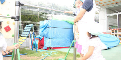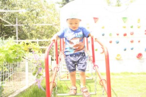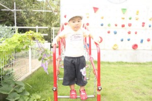 上手に鉄棒につかまってぶら下がっています。腕の力も強くなってきたね!!