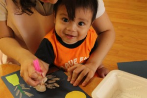 初めての制作に興味深々\(^o^)/楽しくできたよ(*^^)v「見て、上手?」