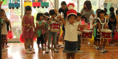 先生が「始まるよー」と言うとみんな張り切って自分が使う物を持って来ます!パンダ組は、ポンポン!キリン組は、ピアニカ!ライオン組は、それぞれ楽器を持って来て楽しく練習しました\(^o^)/