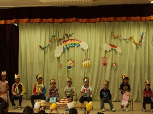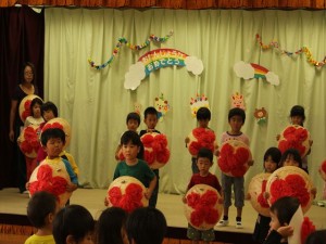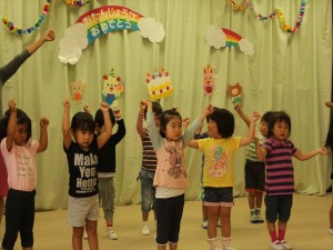 舞台に登って踊るのは、ちょっと恥ずかしかったお友だちもいましたが、ニコニコ笑顔がとっても可愛らしかったです。