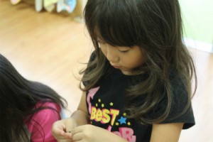 パンダ組のお友達は以前拾ったどんぐりでペンダントつくりをしました(#^.^#)