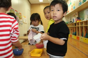 ライオン組が作った色水でも遊びました。