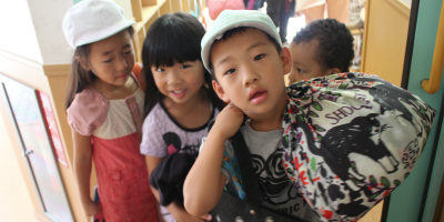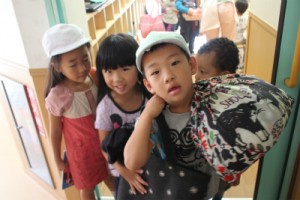 幼稚部組は保育部組の荷物を運んでお手伝い!