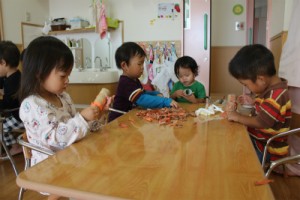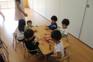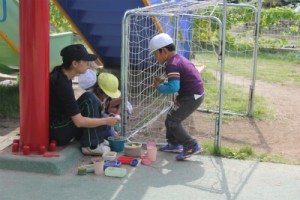 何を作っているの?と聞いたらタコー!と答えてくれましたが、