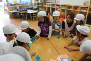 ペアになっているもう一人のお友だちは、裏返してあるカードの中から同じ絵のカードをひいて当てるというゲームです!