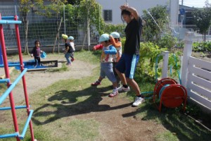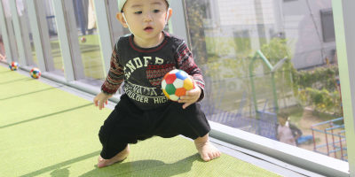 今日は、ラッコ組は、テラスで遊びました\(^o^)/お友だちとボールを追いかけてとても楽しそう★
