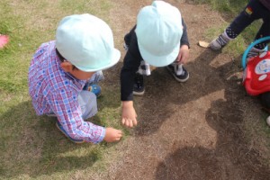 幼稚部のお友だちは、先生と何やってるのかなー?「自分の影が地面に移ってるー」と喜んでいたよ\(^o^)/ライオン組のお友だちが「ぼくも入れてー」と言ってたよ♪