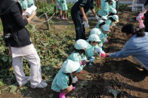 幼稚部のお友だちもたくさん収穫したよ(*^^)v
