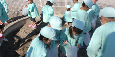 いつも使っている公園をきれいにしようと競争してごみを見つけようとする子供たち(#^.^#)