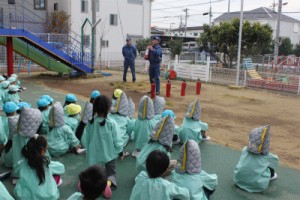 子ども達が応援してくれて、無事に火を消すことが出来ました。