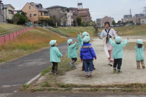 今日は、保育部と幼稚部一緒にお散歩に行きました☀!