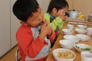 たくさん遊んだあとは美味しい給食の時間♪