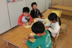 幼稚部のお友だちは午後、ポケモンのぬりえに