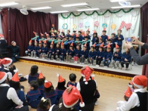 サンタさんがきたので、幼稚部の合奏をサンタさんにも披露しちゃいましょう!
