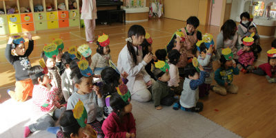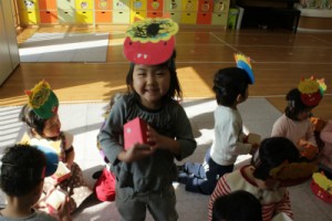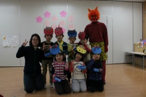 自分で作った鬼のお面をつけてなんだかみんな嬉しそう!