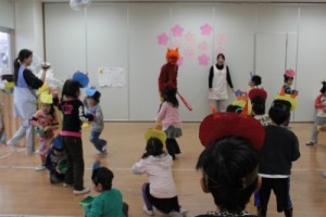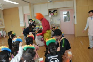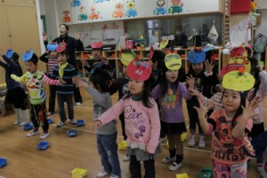 幼稚部も話を聞いて、歌をうたって、豆まき開始!!!