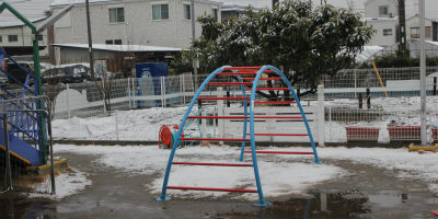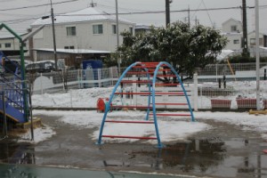 園庭にも雪がうっすら積もっていました(*^。^*)