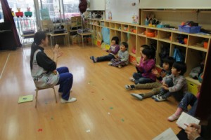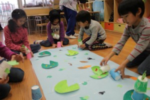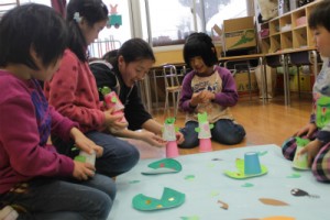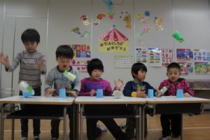 ライオン組の子どもたちと何やら面白そうなことをしていました。