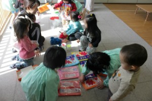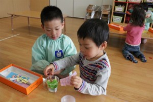 今日は、今月の縦割り保育「お店屋さんごっこ」の品物作りをしました(*^_^*)