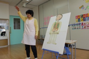 看護師の玉利先生からパネルシアターによる「体のしくみ」は、とてもわかりやすかったです。