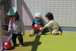 ペンギン組さんはベランダでボール遊び!!