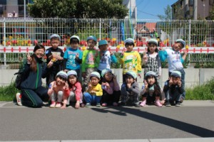 チューリップの花もぐんぐん伸びてきれいな花を咲かせていたので、ライオン組さんはみんなで写真を撮っていました。