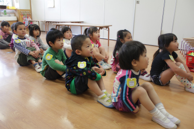 朝の歌が歌い終わったらかっこよくお山座りをして先生のお話を聞きます☆