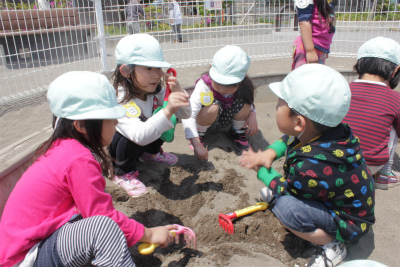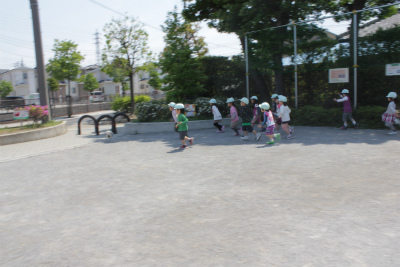 午前中は、幼稚部合同で桃の木公園へお散歩(*^^)v