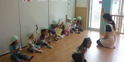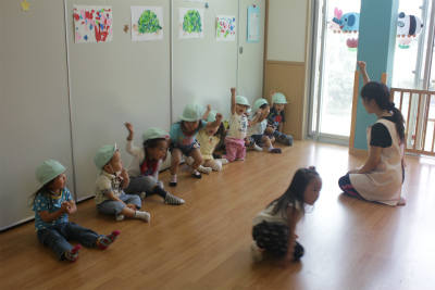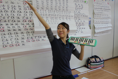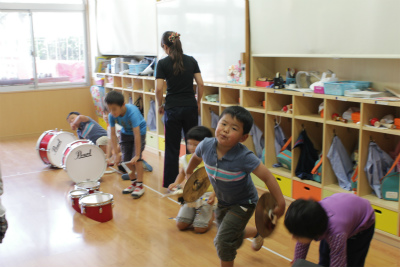 そして、今日幼稚部のお友達は外部から音楽指導の先生が来て夏祭り、運動会に向けての