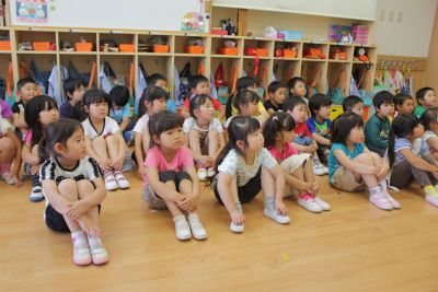 パネルシアターのトラさんのように虫歯にならないよう、集中して聞いている子どもたち(^u^)