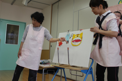 キリン組さんとライオン組さんは看護師さんによる「虫歯菌ニュータンスをやっつけろ」のパネルシアターを見ました!!