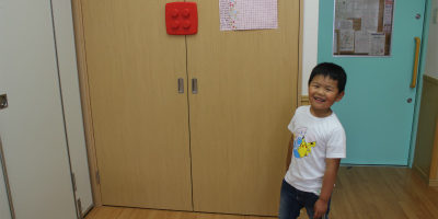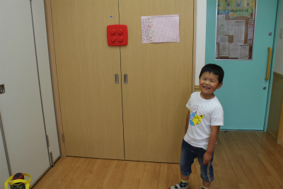 と、見せてきたのはブロック箱のフタを扉にかけてあそんでいるところでした(^O^)