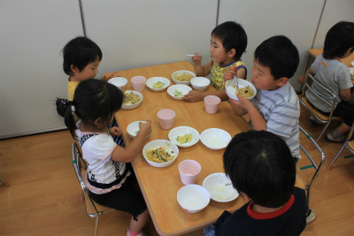 たくさん遊んだあとは、大好きなお昼ご飯です