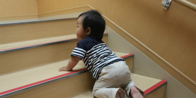 ペンギンさんたちはゆっくり一歩ずつ自分たちで階段を登っていきます。