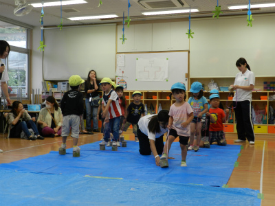 子どもたちは皆、お父さんやお母さんが見に来てくれるのを心待ちにしており、日頃の成果を見せようと必死!少し緊張顏の子もいましたが、一緒に製作したり、体を動かしたり・・・みんな上手に出来ていました(^^)